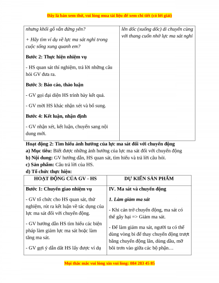 - Nêu được tác dụng cản trở và tác dụng thúc đẩy chuyển động của lực ma sát.