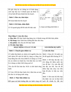do các nhóm tự chuẩn bị). Cần đảm bảo các thiết cốc đựng rồi thêm nước âm