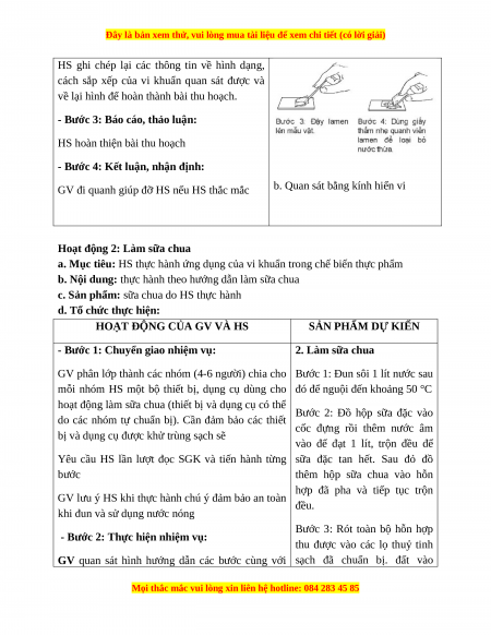 BÀI 28: THỰC HÀNH: LÀM SỮA CHUA VÀ QUAN SÁT VI KHUẨN