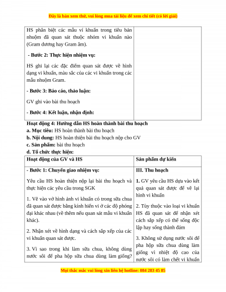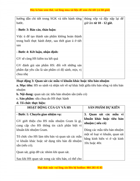 - Bước 1: Chuyển giao nhiệm vụ: 3. Quan sát các mẫu vi