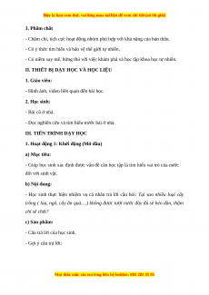 - Nhận thức khoa học tự nhiên: Nêu được vai trò của nước và các chất dinh