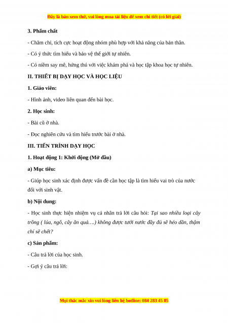 - Giúp học sinh xác định được vấn đề cần học tập là tìm hiểu vai trò của nước đối với sinh vật. b) Nội dung: