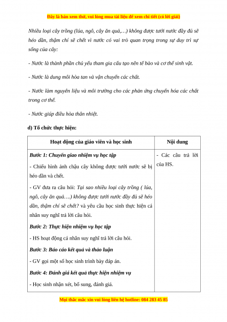 của GV trong khi thảo luận về vai trò của nước và các chất dinh dưỡng đối với