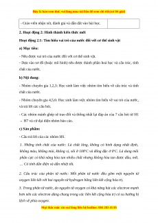 - Dựa vào sơ đồ (hoặc mô hình) nêu được thành phần hoá học và cấu trúc, tính chất của nước. b) Nội dung: