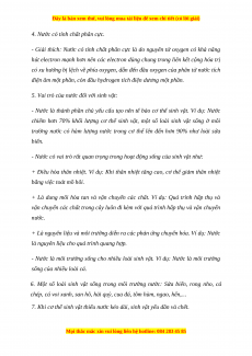 dưỡng đối với sinh vật; thành phần hoá học, cấu trúc và tính chất của nước.