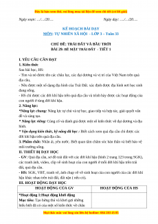 MÔN: TỰ NHIÊN XÃ HỘI - LỚP 3 – Tuần 33