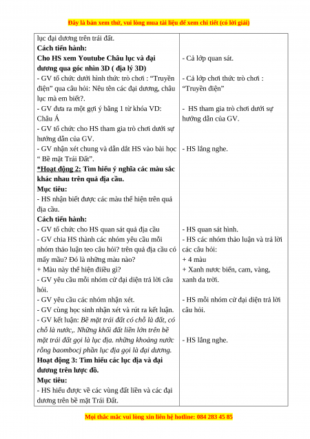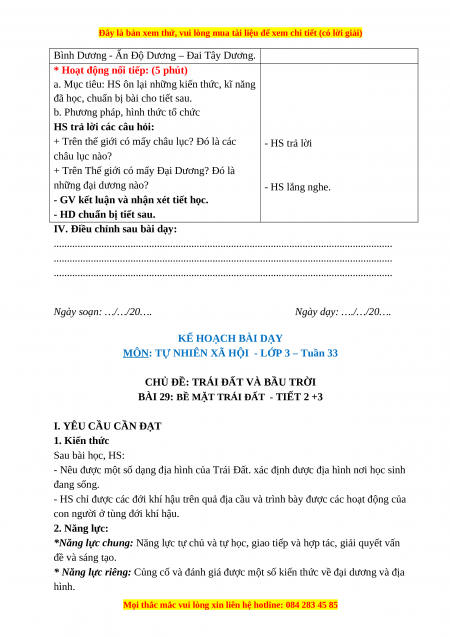 BÀI 29: BỀ MẶT TRÁI ĐẤT - TIẾT 2 +3
