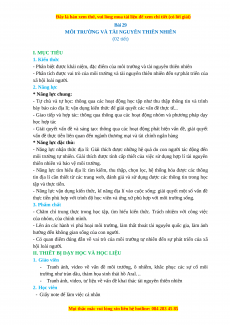 MÔI TRƯỜNG VÀ TÀI NGUYÊN THIÊN NHIÊN (02 tiết) I. MỤC TIÊU 1. Kiến thức