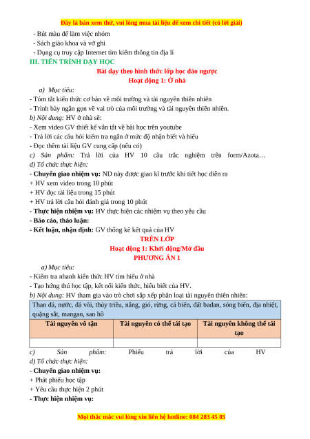 Tài nguyên không thể tái tạo c) Sản phẩm: Phiếu trả lời của HV