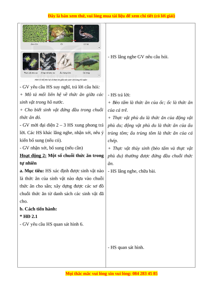Hoạt động 2: Một số chuỗi thức ăn trong phù du) thường được đứng đầu chuỗi thức tự nhiên ăn.