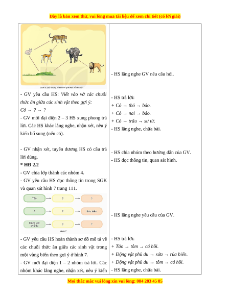 Hoạt động 1: Mối liên hệ thức ăn giữa