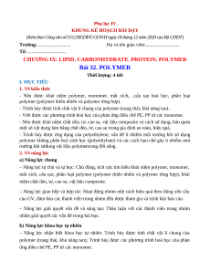 CHƯƠNG IX: LIPID. CARBONHYDRATE. PROTEIN. POLYMER Bài 32. POLYMER