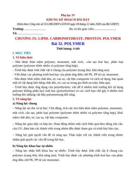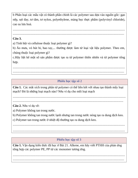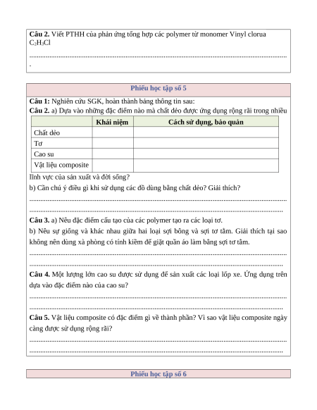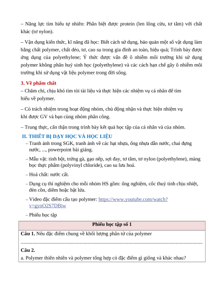 – Video đặc điểm cấu tạo polymer: https://www.youtube.com/watch? v=gynO2S7DBiw – Phiếu học tập