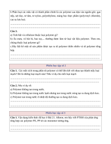 Câu 1. Nêu đặc điểm chung về khối lượng phân tử của polymer