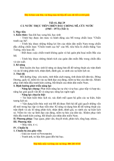 CẢ NƯỚC TRỰC TIẾP CHIẾN ĐẤU CHỐNG MĨ, CỨU NƯỚC (1965 - 1973) (Tiết 1) I. Mục tiêu