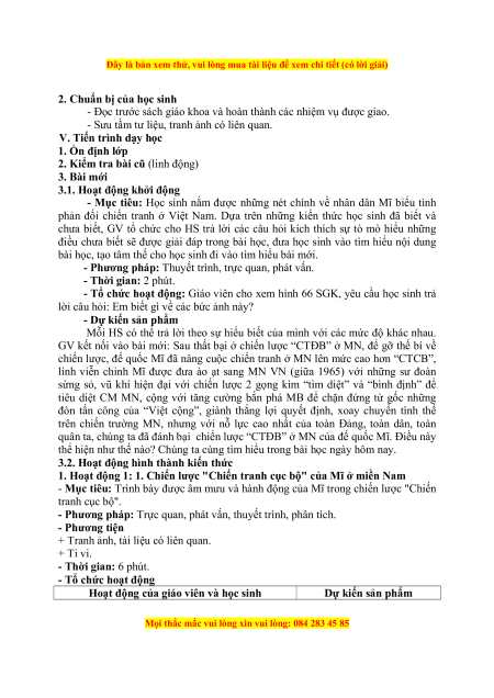 - Mục tiêu: Trình bày được âm mưu và hành động của Mĩ trong chiến lược "Chiến tranh cục bộ".