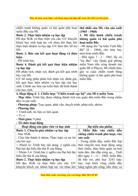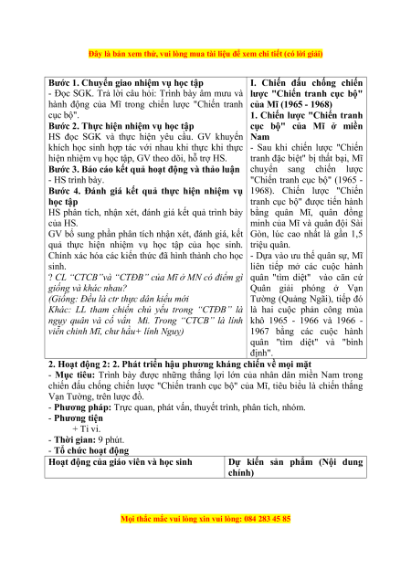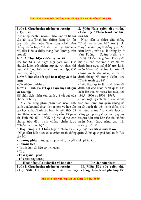 - Đọc SGK. Trả lời câu hỏi: Trình bày âm mưu và lược "Chiến tranh cục bộ"