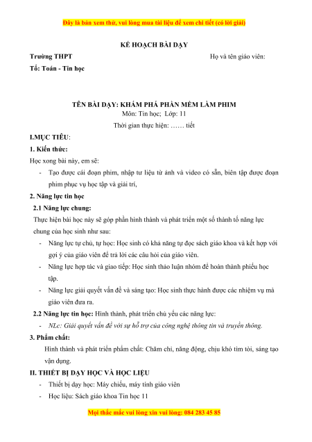 Đây là bản xem thử, vui lòng mua tài liệu để xem chi tiết (có lời giải) KẾ HOẠCH BÀI DẠY Trường THPT Họ và tên giáo viên: Tổ: Toán - Tin học
