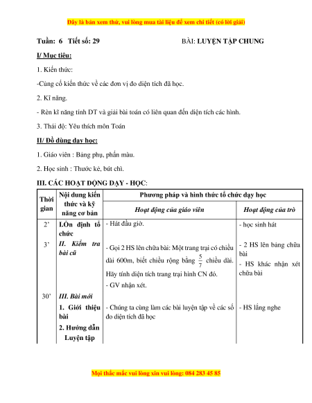 Tuần: 6 Tiết số: 29 BÀI: LUYỆN TẬP CHUNG I/ Mục tiêu: 1. Kiến thức: