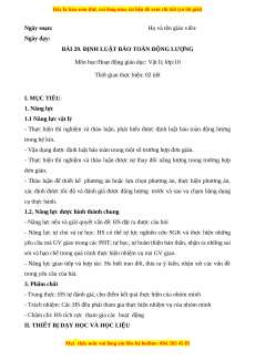 Giáo án Bài 29 Vật lí 10 Kết nối tri thức (2024): Định luật bảo toàn động lượng