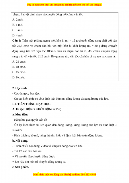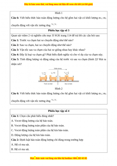 Câu 6: Viết biểu thức bảo toàn động lượng cho hệ gồm hai vật có khối lượng m1; m2