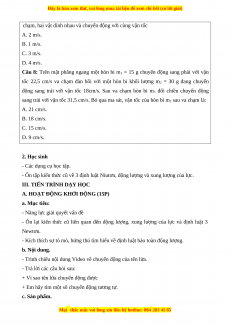 Câu 7: Một vật có khối lượng m chuyển động với vận tốc 3 m/s đến va chạm với