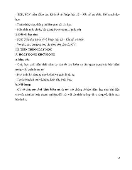 Giáo án Bài 3: Bảo hiểm KTPL 12 Kết nối tri thức