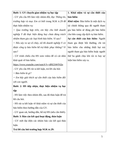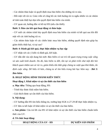 - Giải thích được sự cần thiết của bảo hiểm. b. Nội dung: