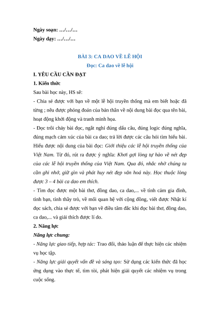 BÀI 3: CA DAO VỀ LỄ HỘI