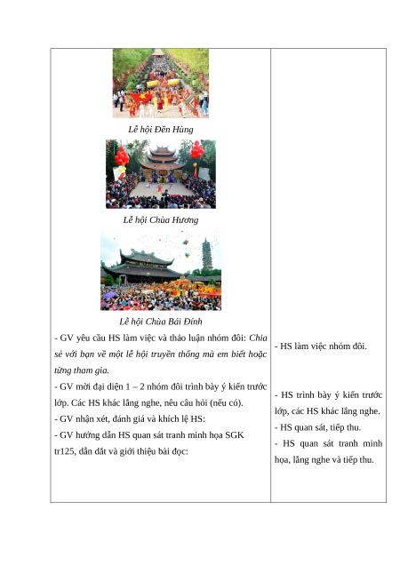 - GV cho HS xem ảnh về một số lễ hội truyền thống sau - HS quan sát hình ảnh. đây: