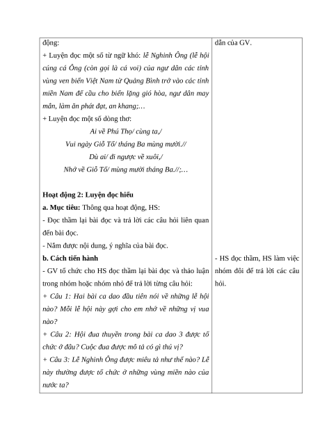 - Đọc được bài đọc trong nhóm và trước lớp. b. Cách tiến hành