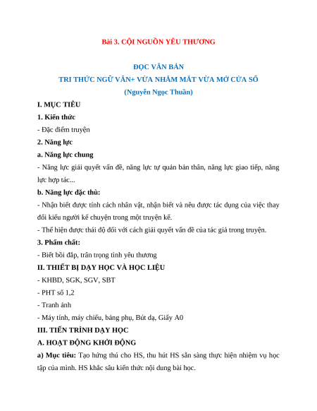Giáo án Bài 3: Cội nguồn yêu thương (2024) Kết nối tri thức