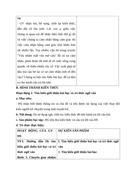 Hoạt động 1: Tìm hiểu giới thiệu bài học và tri thức ngữ văn a. Mục tiêu: