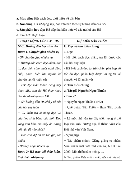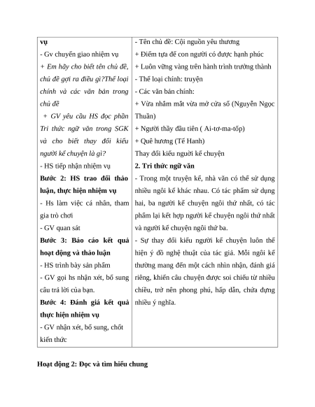 Hoạt động 2: Đọc và tìm hiểu chung