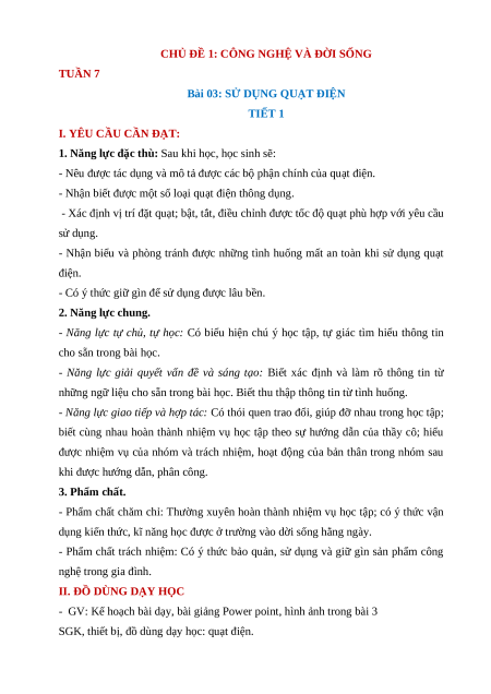 Bài 03: SỬ DỤNG QUẠT ĐIỆN TIẾT 1