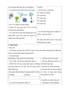 + Nhận biết được một số loại quạt điện thông dụng. - Cách tiến hành: