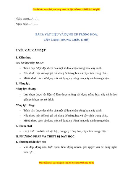 BÀI 3: VẬT LIỆU VÀ DỤNG CỤ TRỒNG HOA,