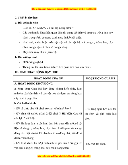 liệu và dụng cụ trồng hoa, cây cảnh. 2 đội quan sát và gọi