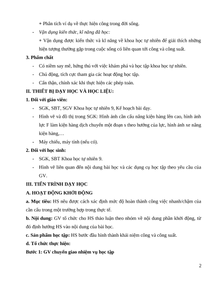 Giáo án Bài 3: Công và công suất Khoa học tự nhiên 9 Chân trời sáng tạo