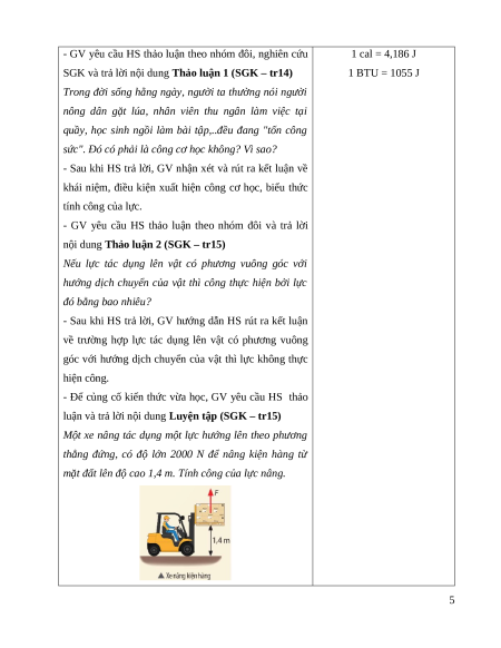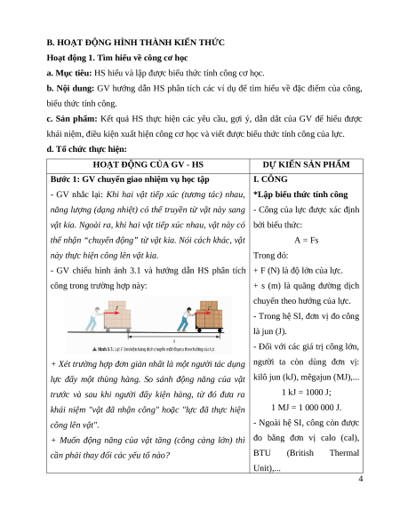 trước và sau khi người đẩy kiện hàng, từ đó đưa ra 1 kJ = 1000 J;
