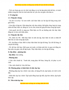 - Phương pháp dạy học chính: Làm mẫu, sử dụng lời nói, tập luyện, trò chơi và thi