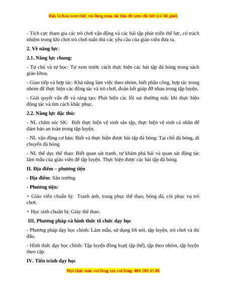 - Phương pháp dạy học chính: Làm mẫu, sử dụng lời nói, tập luyện, trò chơi và thi đấu.