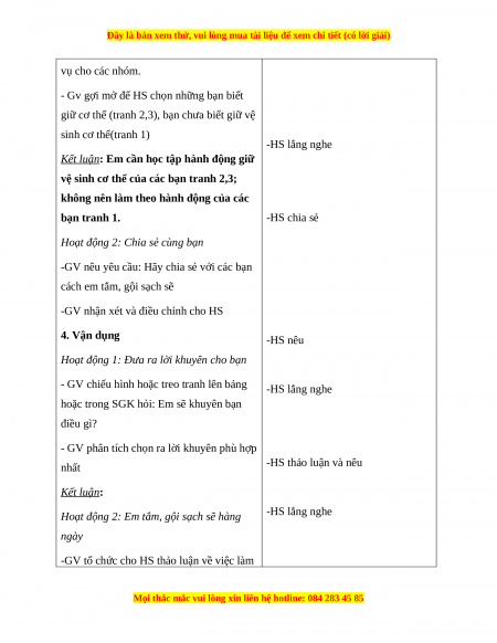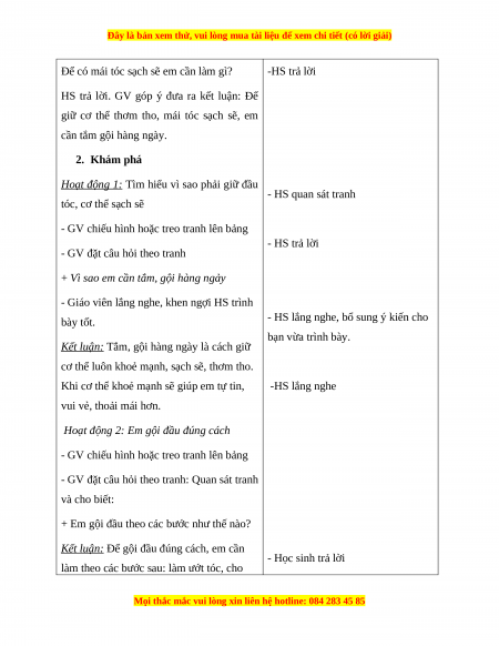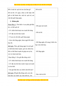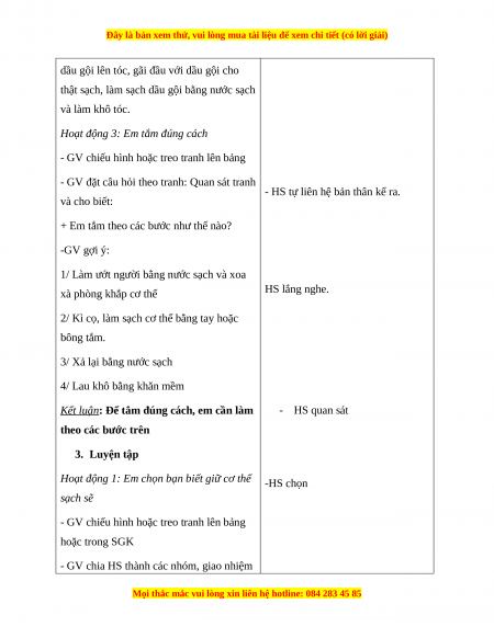 Hoạt động 2: Em tắm, gội sạch sẽ hàng