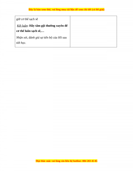 + Nêu được các việc làm để giữ đầu tóc, cơ thể sạch sẽ