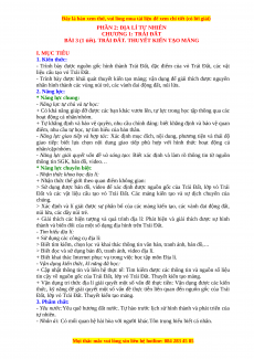 - Trình bày được nguồn gốc hình thành Trái Đất, đặc điểm của vỏ Trái Đất, các vật