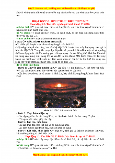 * Câu hỏi: Đọc thông tin và quan sát hình 3.1, hãy trình bày nguồn gốc hình thành Trái Đất?