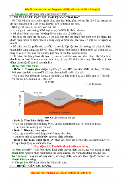 a) Mục đích:HV trình bày được đặc điểm của vỏ Trái Đất, các vật liệu cấu tạo vỏ Trái