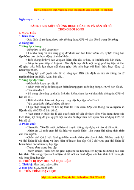 kiến thức, kỹ năng để giải quyết một số vấn đề thực tiễn liên quan đến sử dụng GPS và bản đồ số. 3. Phẩm chất: