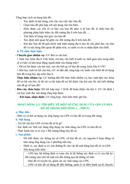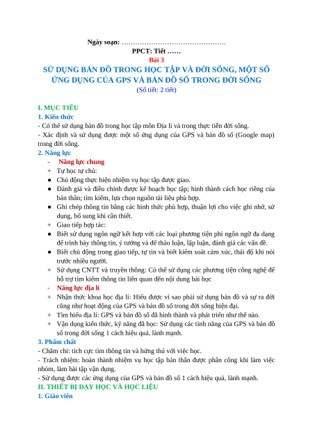 ỨNG DỤNG CỦA GPS VÀ BẢN ĐỒ SỐ TRONG ĐỜI SỐNG (Số tiết: 2 tiết) I. MỤC TIÊU 1. Kiến thức