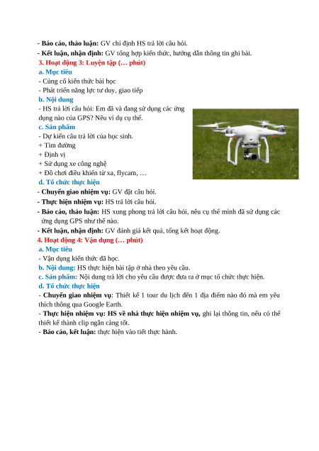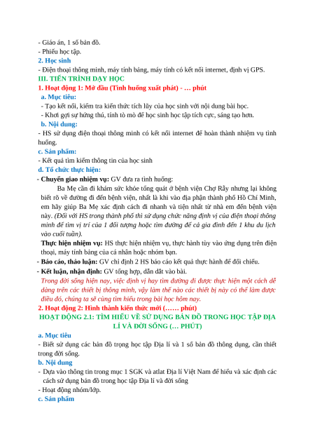 - Xác định và sử dụng được một số ứng dụng của GPS và bản đồ số (Google map) trong đời sống. 2. Năng lực - Năng lực chung + Tự học tự chủ:
